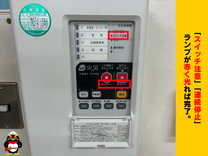 ※火災受信機の操作は正当な理由がある場合にのみ行ってください。