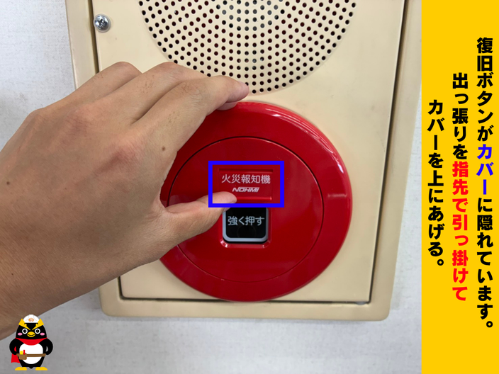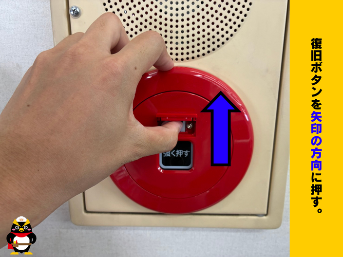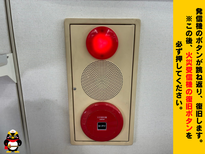発信機が押されて非常ベルが鳴った際は、発信機と火災受信機の両方で復旧操作が必要です。