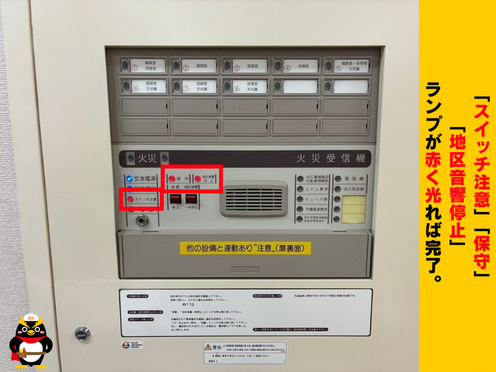 ※火災受信機の操作は正当な理由がある場合にのみ行ってください。